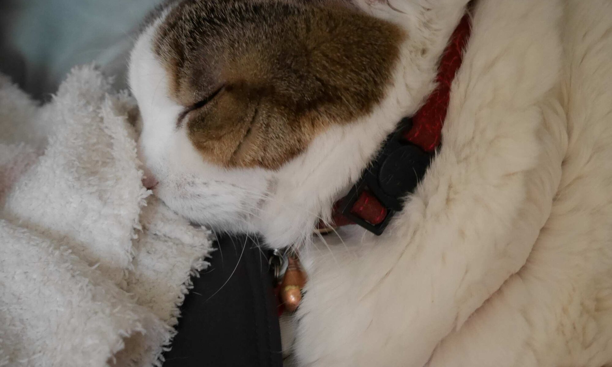 臭いを嗅いで寝ている、猫のゆず。