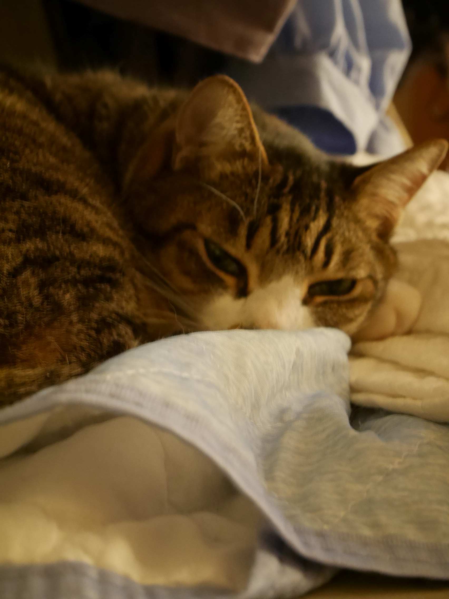 • 臭いを嗅いで寝ている、猫のゆず。 12/21/2025