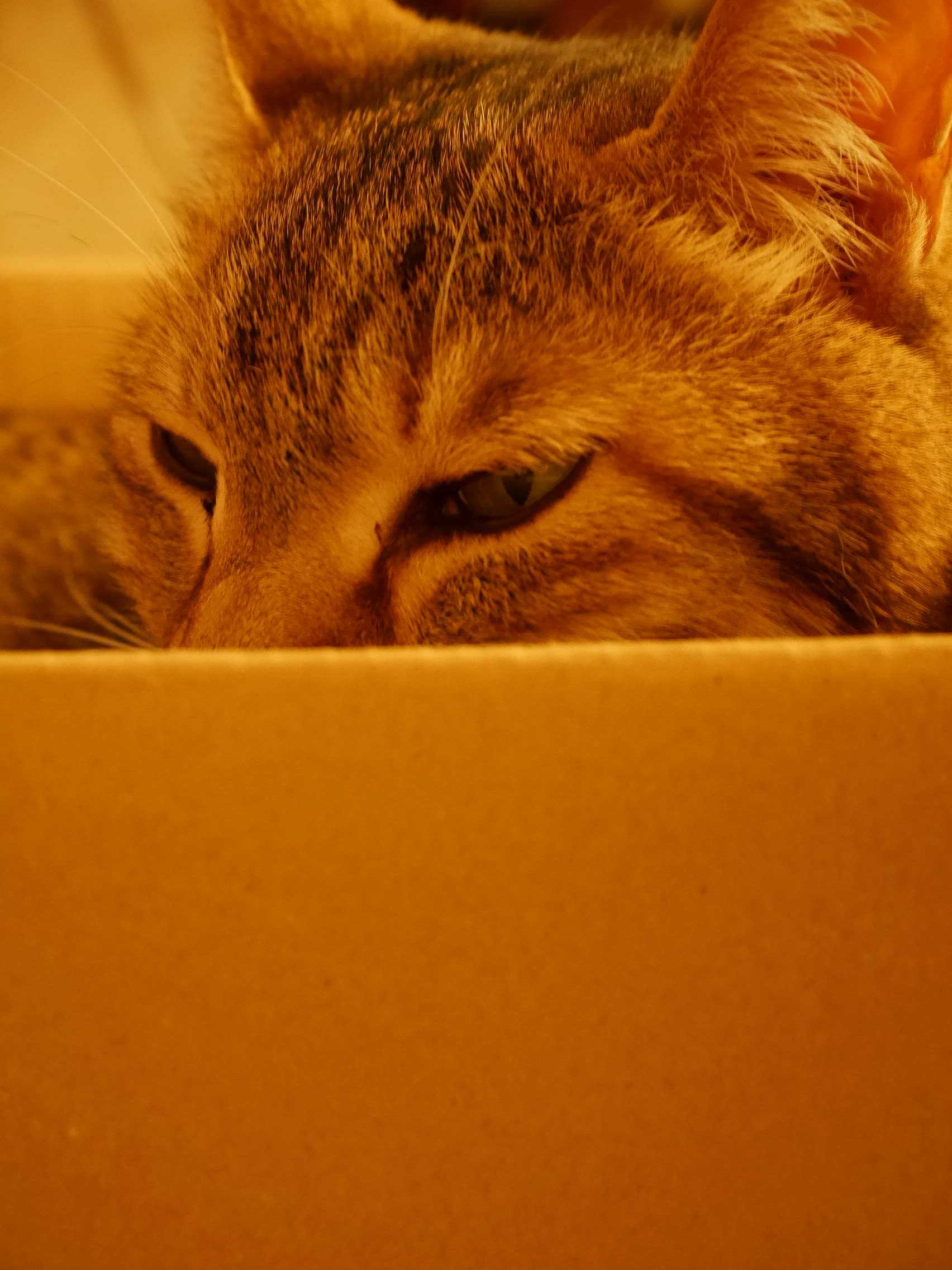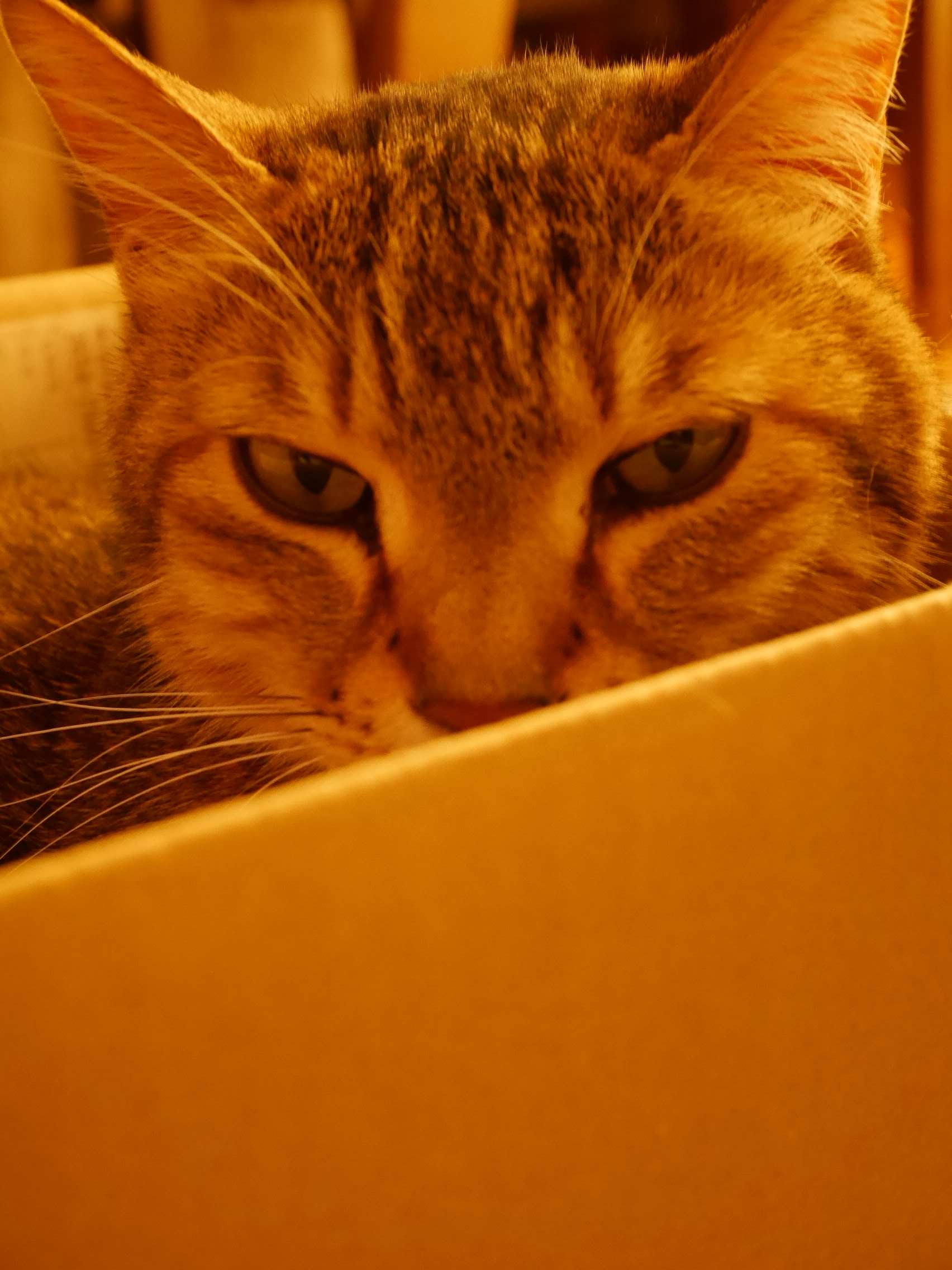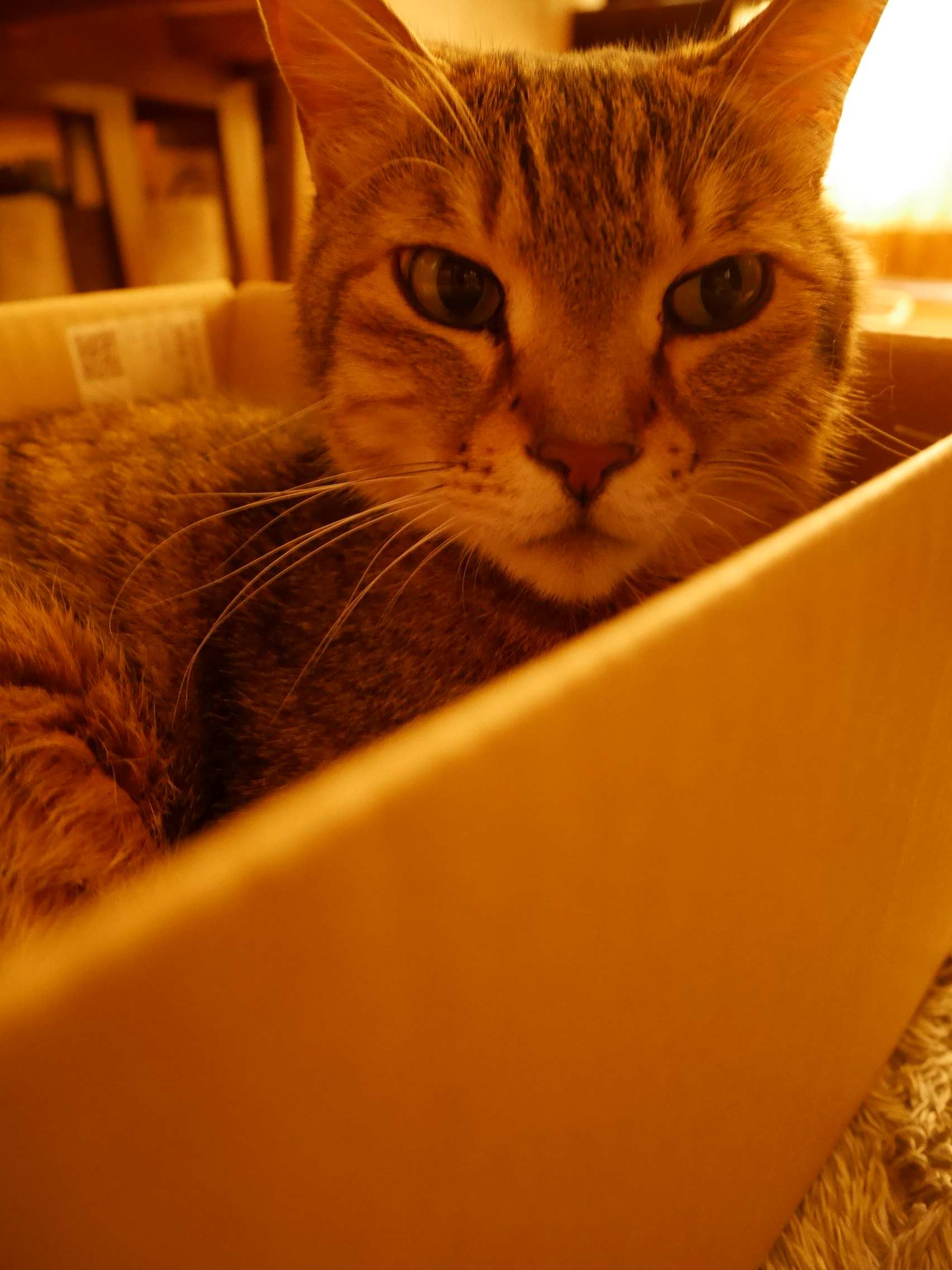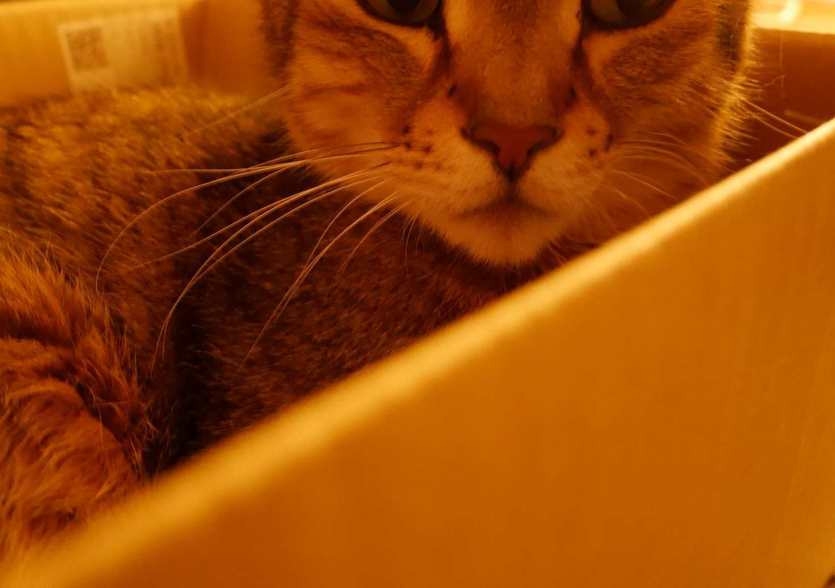 珍しく猫の茶々が箱の中・・・