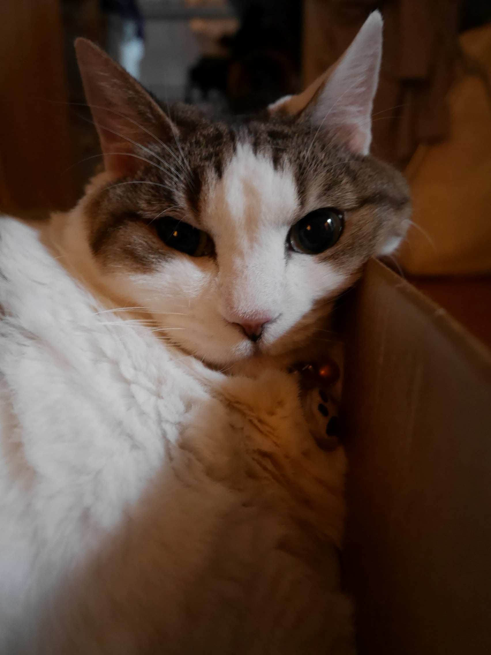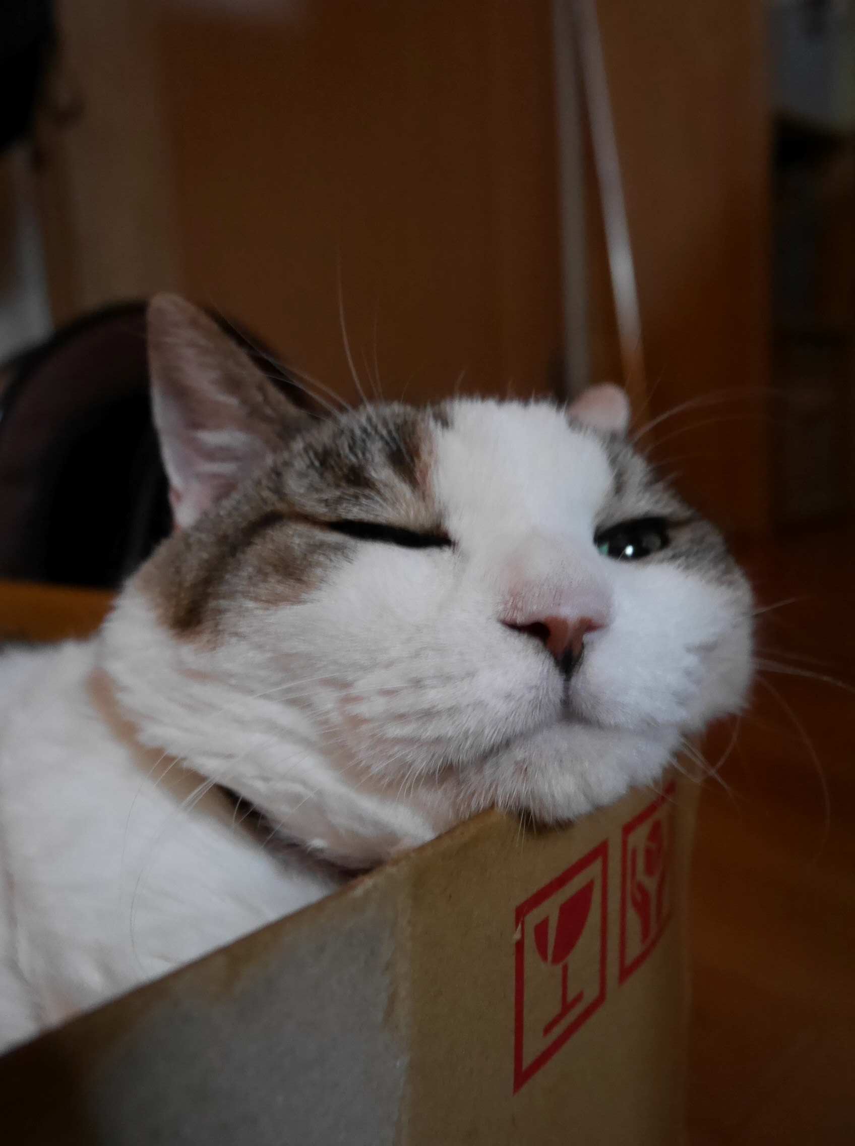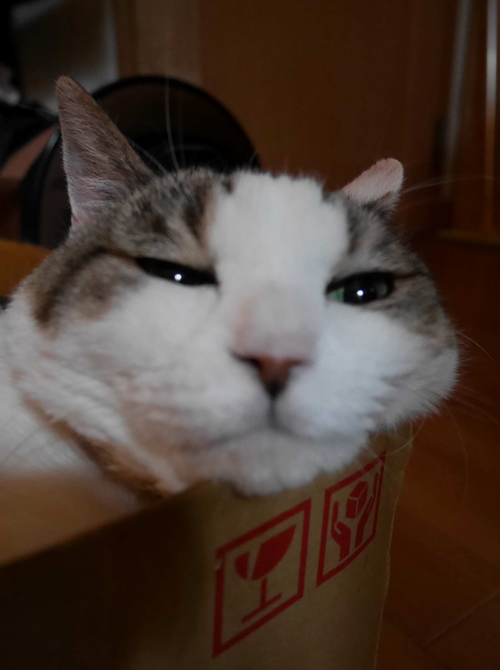 投稿日: 10/19/202510/19/2025 投稿者: 箱のサイズが小さい、猫のゆず。今日もお気に入りの箱の中。ちょっと窮屈なので、目が閉じ気味なのかな・・・こうすうると、意外とパッチリな目に。。関連記事:眩しいにゃ。。猫の寝方。(ゆず)猫の行動。(ゆず)猫のゆずが「てへぺろ(・ω)」怖い顔の猫。(ゆずの寝起きの怖い顔・・・)巨大化した猫。(猫のゆずが大きく見えるアングル・・・)いびきをかいて寝る猫のゆず。猫のゆずのルーティーン・・・お気に入りの段ボールの角・・・煌めく猫のゆず。暑くなったり、寒くなったり・・・猫のゆず。